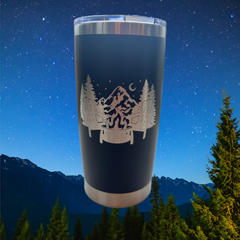 Campfire Mountain View Engraved Tumbler Travel Mug